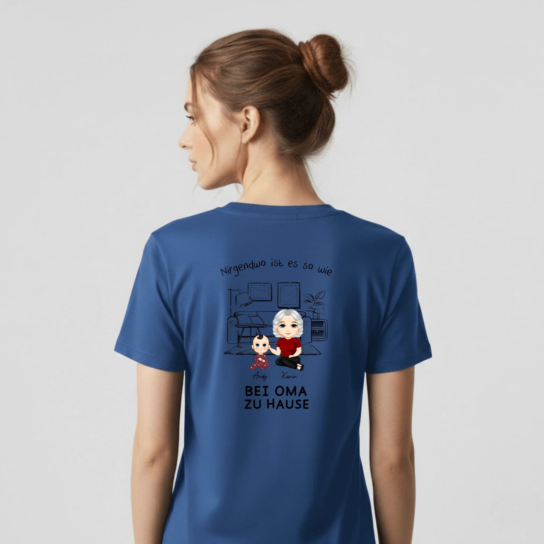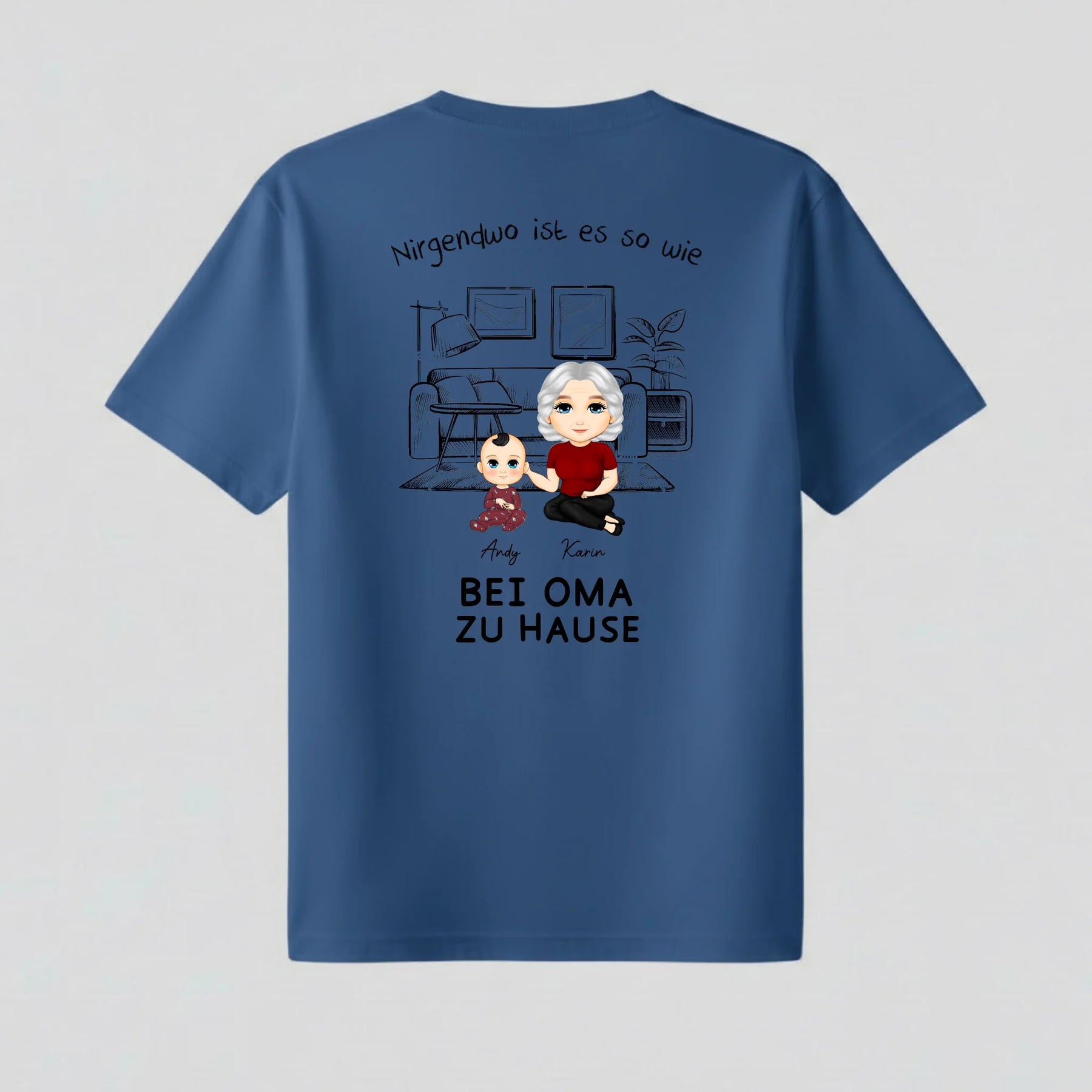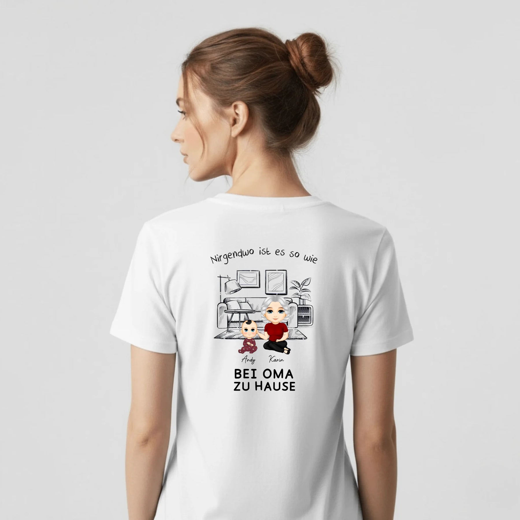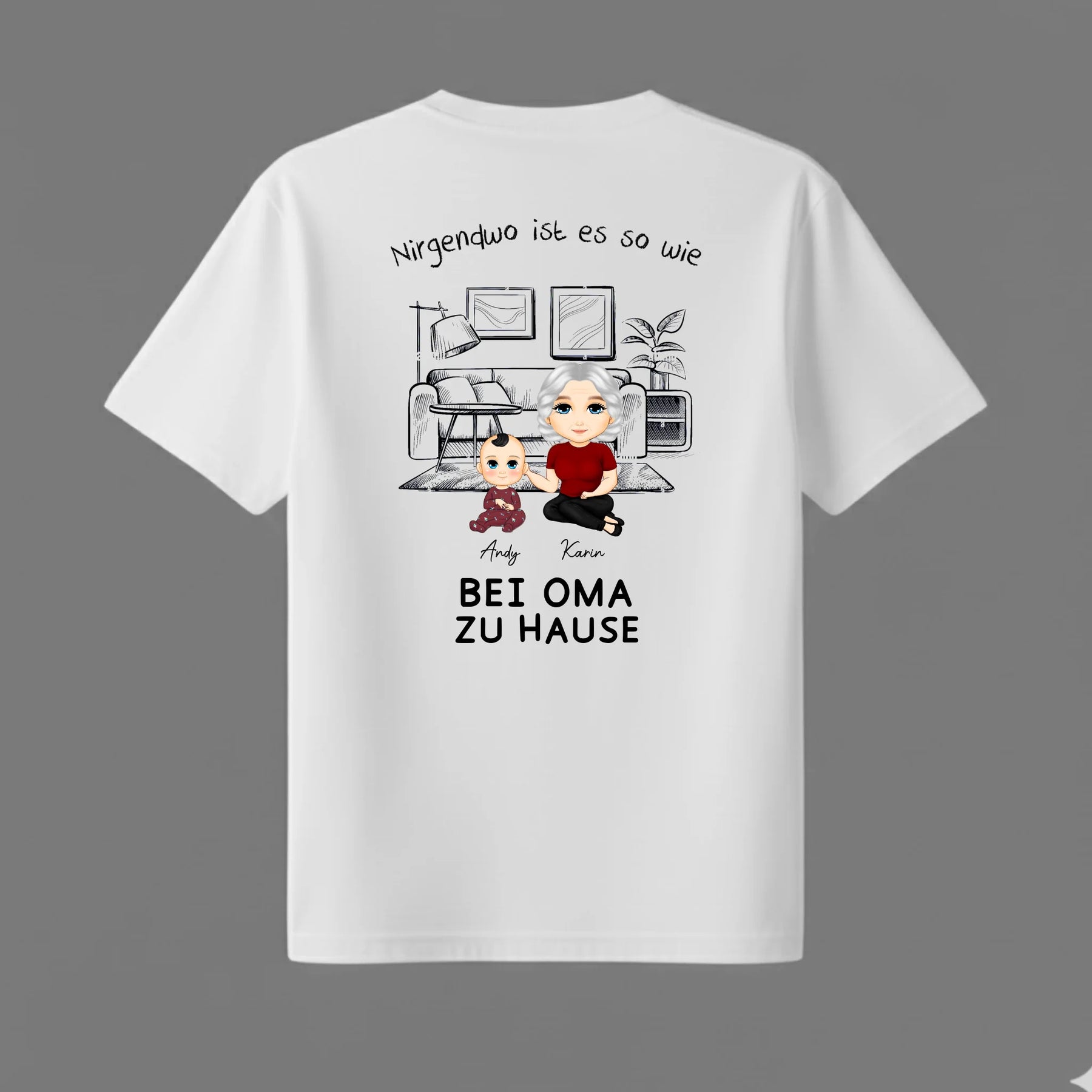 Bei Oma zu Hause - Personalisiertes T-Shirt mit Rückenprint