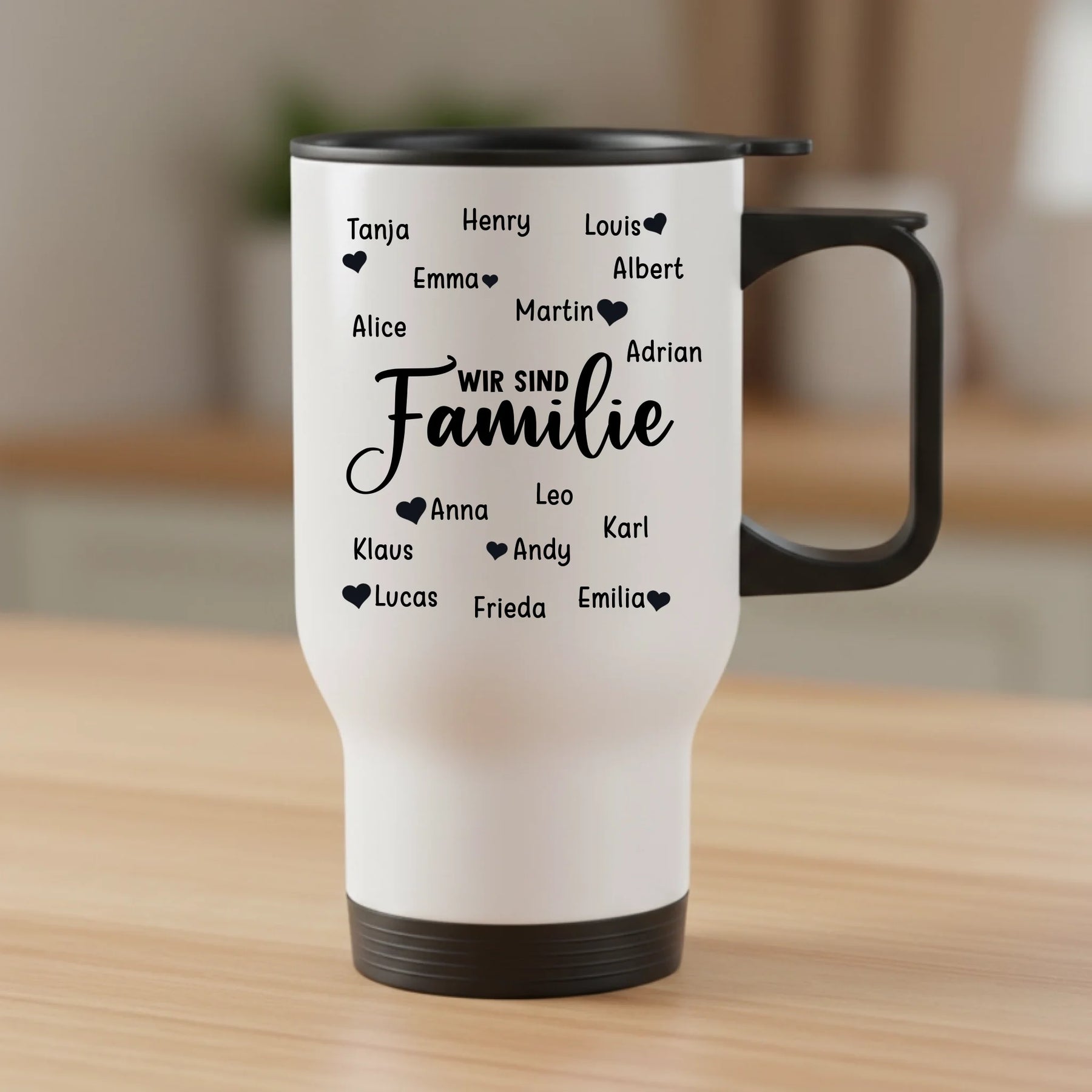 Der Wir sind Familie - Thermobecher mit Henkel ist ein perfektes Geschenk für deine Liebsten oder für dich selbst. Alle unsere Produkte sind für dich personalisiert und werden in erstklassiger Qualität hergestellt.